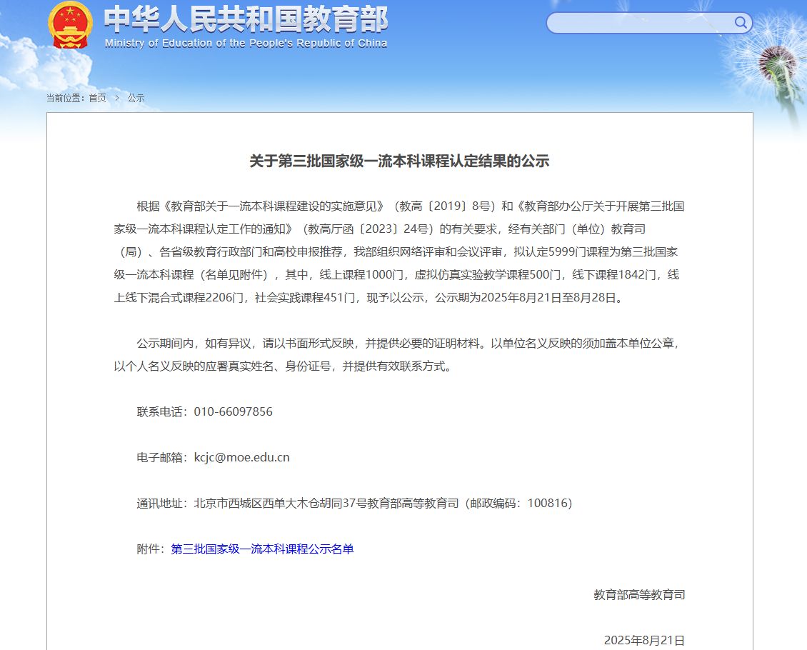 近日,教育部网站发布了《关于第三批国家级一流本科课程认定结果的公示》,计算机与信息工程学院陈长喜教授负责的《设计模式与软件体系结构》获批线上线下混合式一流课程。这一成果的取得,实现了学院在课程建设方面的重大突破,也是对学院课程建设成效的高度认可,为学院的教学改革和发展注入了强劲动力。